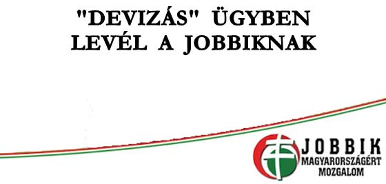 "DEVIZÁS" ÜGYBEN LEVÉL A JOBBIKNAK